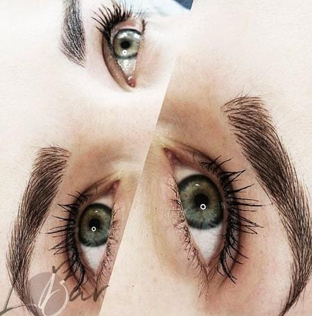 Rezultatul obținut vor fi sprâncene vizual voluminoase și dense cu formă corectă și uniformă și culoare intensă, saturată și frumoasă. Dacă se folosește nuanța potrivită de pigment, iar machiajul permanent este efectuat corect, rezultatul este mai apropiat de cel natural – firele de păr și aspectul acestora arată natural și firesc. În ansamblu, astfel de sprâncene contribuie la accentuarea și completarea look-ului cu sprâncene bine îngrijite și aranjate.